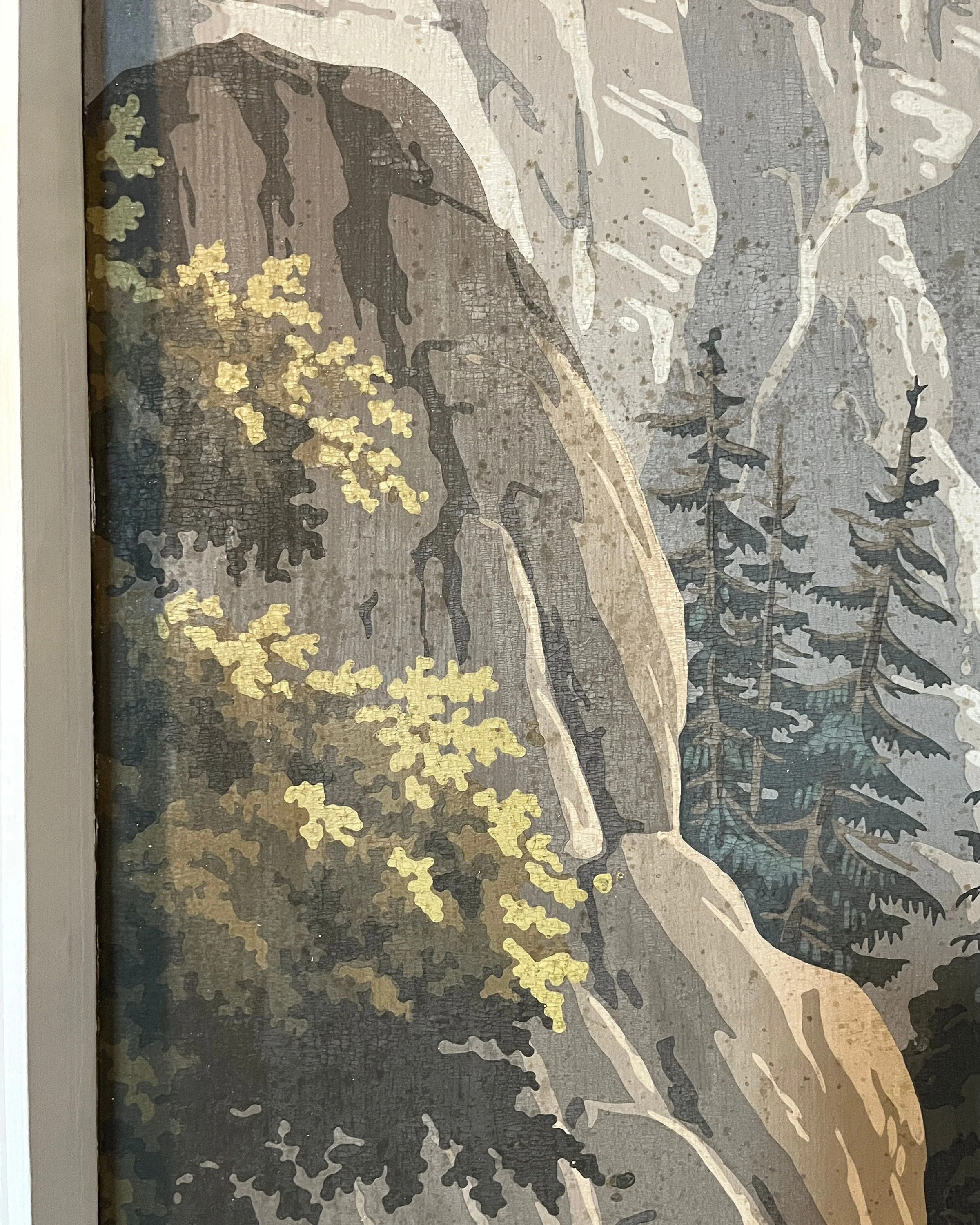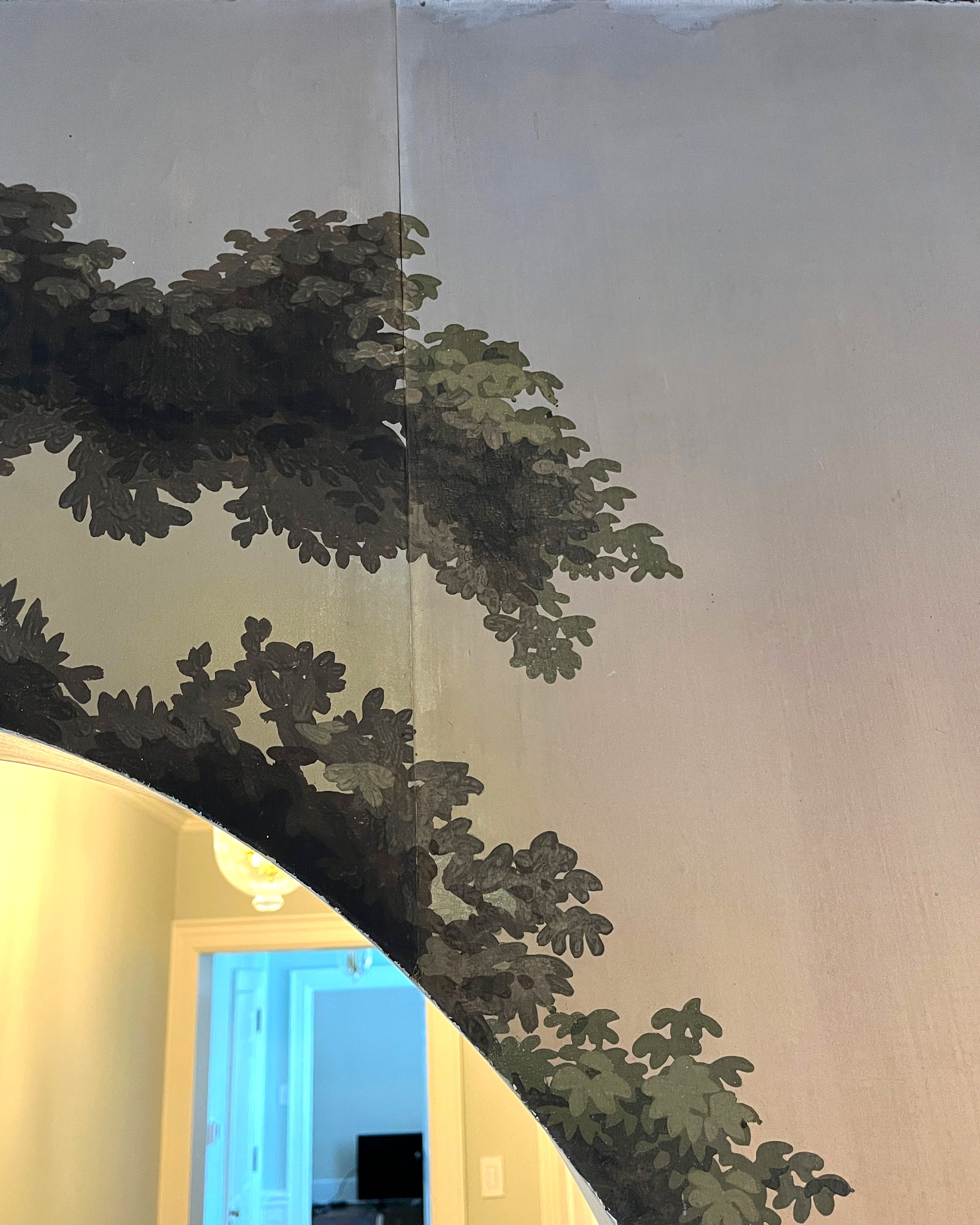 We also retouched missing paint throughout, meticulously addressed the age-related spotting in each scene, and hand-painted two switch plates and a thermostat to blend seamlessly with the surrounding design.